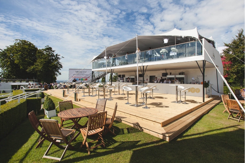 Not always. When ballast is needed due to strong winds or site specific requirements, we can stake into soft ground directly through our baseplates, like they do on marquees. On more long term structures, we can use resin anchors into hard standing and concrete to hold down the baseplates. If none of this is possible, we have developed many ways of utilising ballast weight under our decks to hide it, but if all else fails, concrete ballast can be brought in and secured directly to our columns and beams.