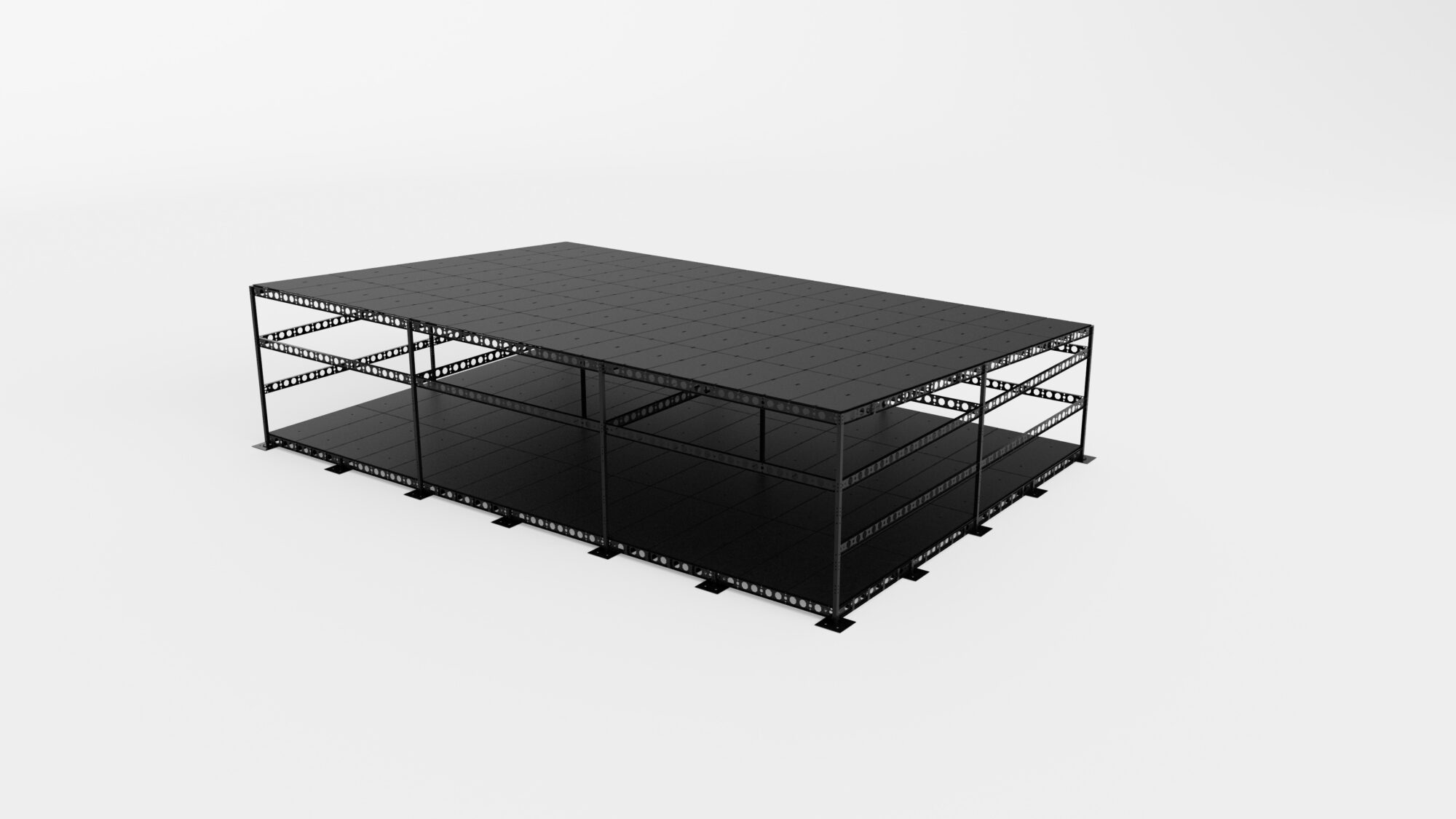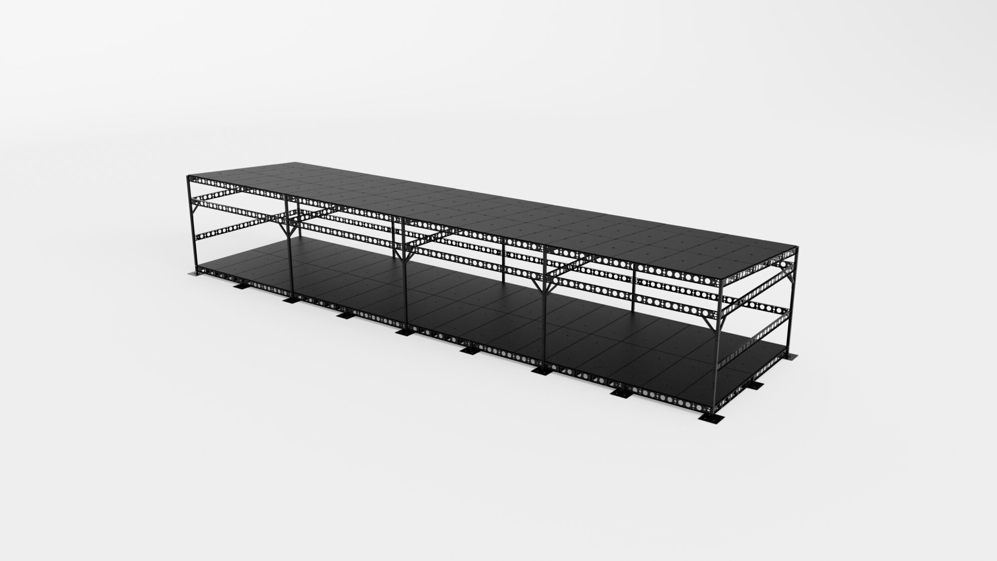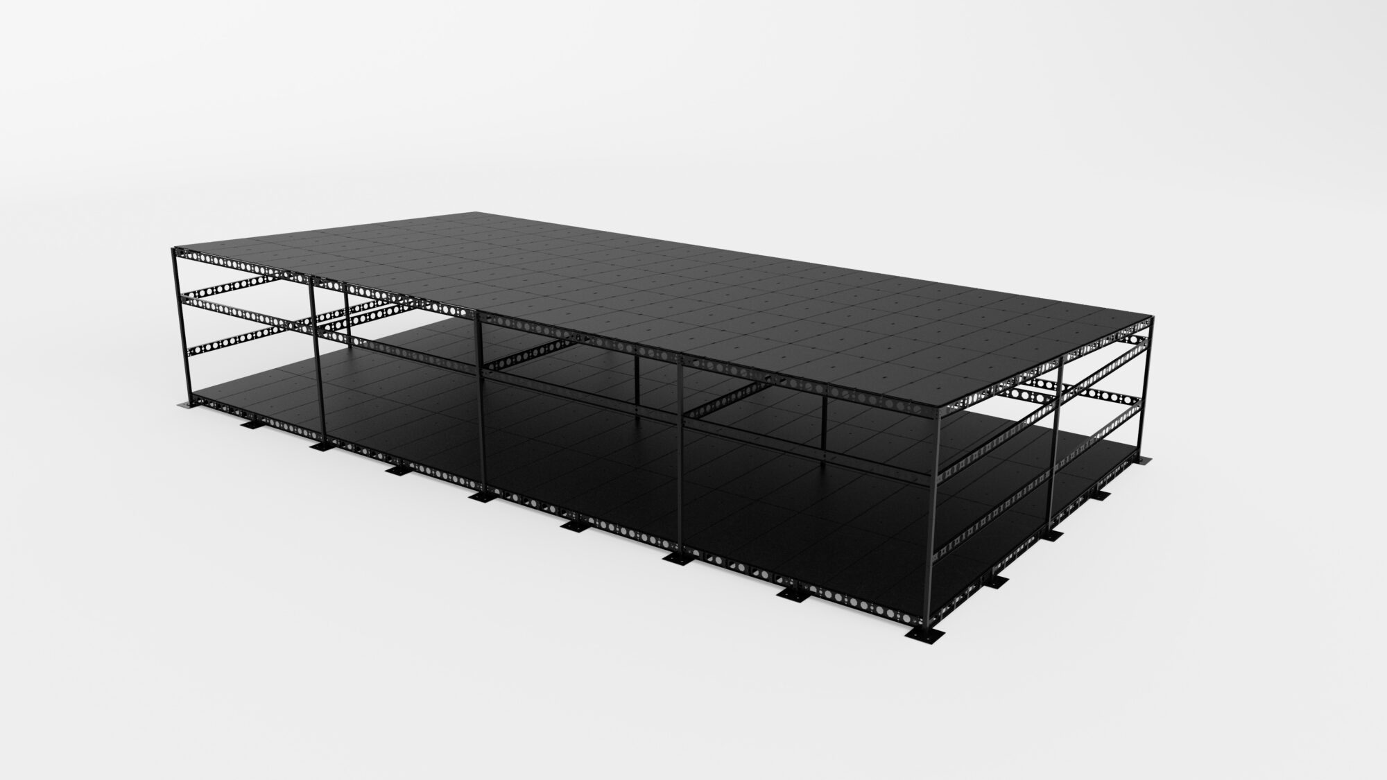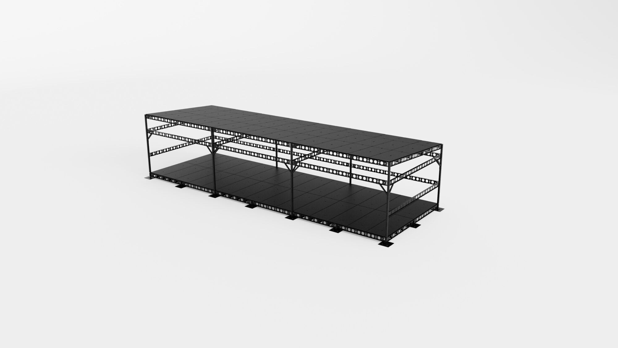 We are currently developing larger roof beams that can span up to 10m. This will allow us to build ground level structures that have a much wider span, without any columns getting in the way. When we build mezzanines, we have to retain some support underneath to reach the loads needed for crowds of people and equipment.
