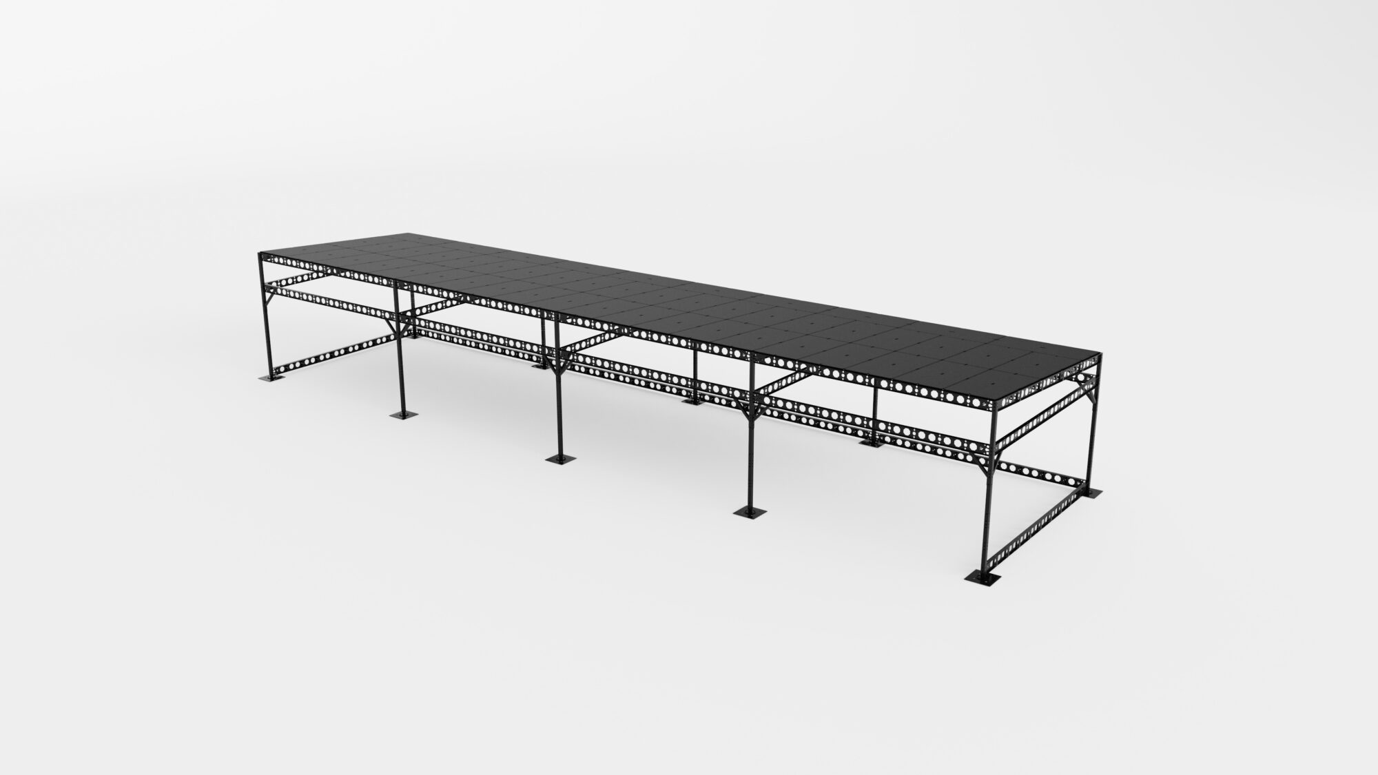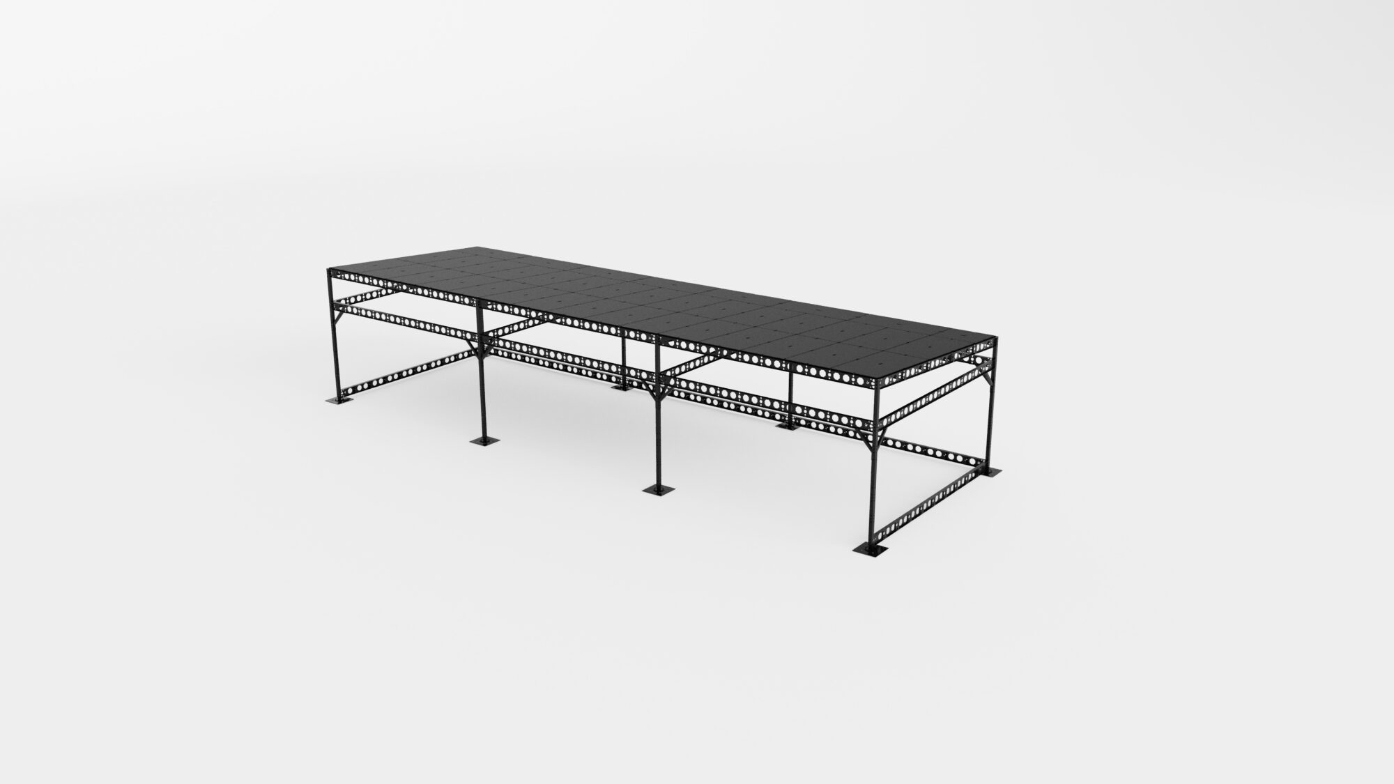 Our standard beams start at 0.5m and increase in size by 500mm, all the way up to our largest span of 5.0m. Our specially designed modular structure system allows us to connect beams together in any configuration. Check out our standard structures. If you can't find what you're looking for there, we can design you a bespoke structure.